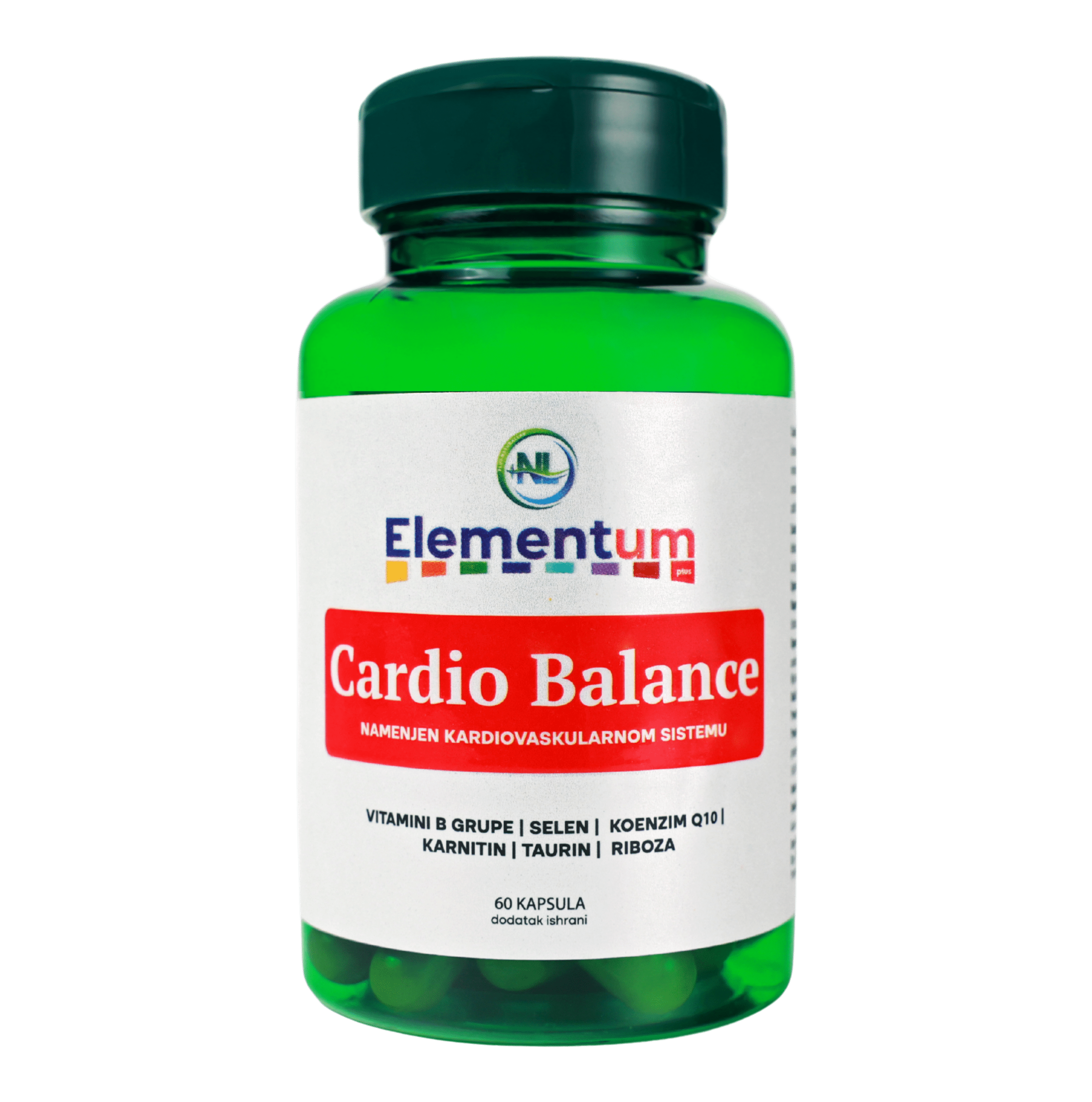 Cardio Balance, kapsule je dijetetski suplement sa vitaminima B grupe (B1, B2, B5, B6, B7, B9), selenom, koenzimom Q10, karnitinom, taurinom i ribozom, namenjen kardiovaskularnom sistemu i srcu, energetskom metabolizmu i antioksidativnoj zaštiti. Vitamin B1 doprinosi normalnoj funkciji srca. Vitamin B2 doprinosi održavanju normalnih crvenih krvnih zrnaca. Vitamin B6 doprinosi normalnom stvaranju crvenih krvnih zrnaca i normalnom metabolizmu proteina i glikogena. Vitamin B9 doprinosi normalnom stvaranju krvi. Vitamini B2, B5 i B6 doprinose održavanju normalnog energetskog metabolizma i smanjenju umora i iscrpljenosti. Vitamin B2 i selen doprinose zaštiti ćelija od oksidativnog stresa.