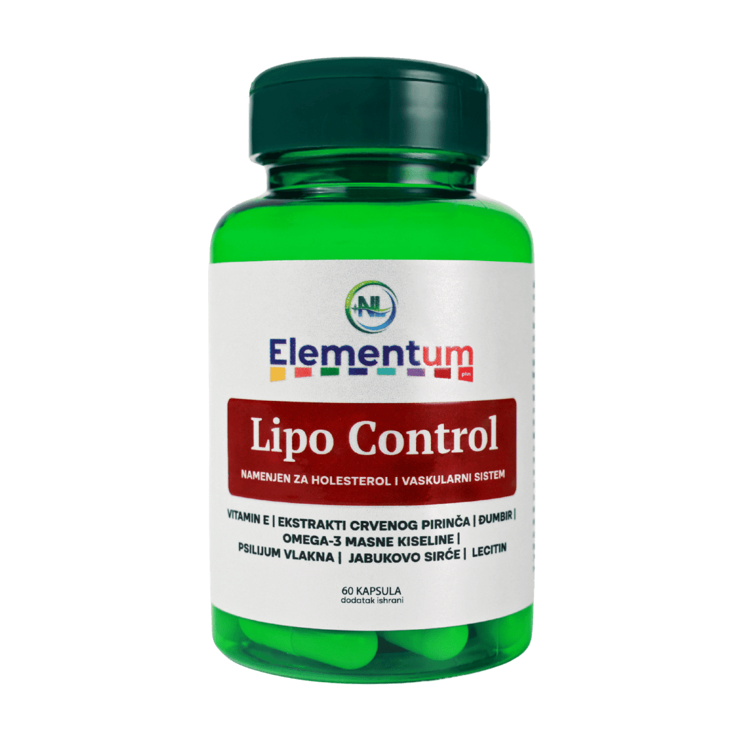 Lipo Control, kapsule je dijetetski suplement sa vitaminom E, ekstraktima crvenog pirinča i đumbira, omega – 3 masnim kiselinama, psilijum vlaknima, jabukovim sirćem i lecitinom, namenjen za holesterol, vaskularni sistem i antioksidativnu zaštitu. Psilijum doprinosi kontroli nivoa holesterola u krvi i zdravlju vaskularnog i digestivnog sistema. Vitamin E doprinosi zaštiti ćelija od oksidativnog stresa.